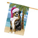 Summertime Happy Holidays Christmas Australian Shepherd Dog on Tropical Island Beach House Flag