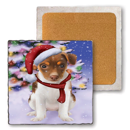 Original price $34.99 - Original price $34.99Original price $34.99$34.99$34.99 - $34.99Current price $34.99| /Winterland Wonderland Rat Terrier Dog In Christmas Holiday Scenic Background Set of 4 Natural Stone Marble Tile Coasters MCST48413