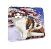 Winterland Wonderland Calico Cat In Christmas Holiday Scenic Background Coasters Set of 4 CST55653