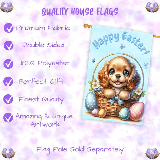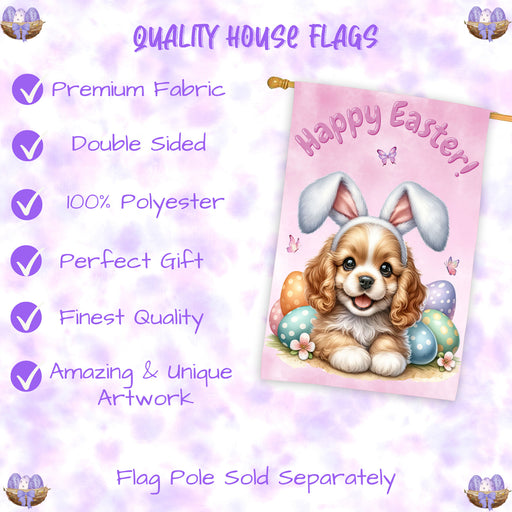 Doggie of the DayRefresh your outdoor space with this Cocker Spaniel spring Easter house flag, crafted in a 28x40 inch double sided design. Showcasing a charming Co...