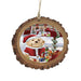 You will be sure to spread Holiday cheer this year when you display your round wooden shaped ornament and it will be a unique addition to your tree!