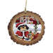 You will be sure to spread Holiday cheer this year when you display your round wooden shaped ornament and it will be a unique addition to your tree!