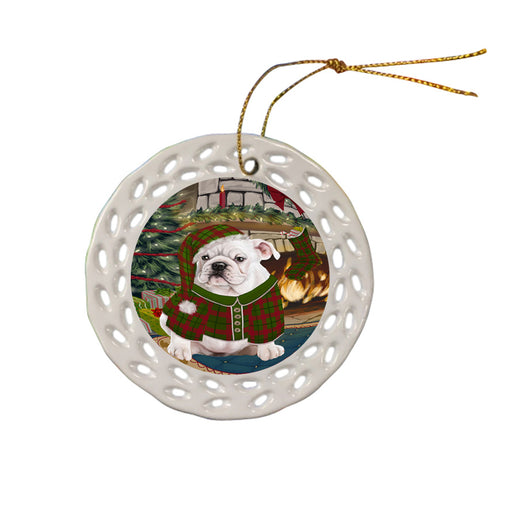 The Stocking was Hung Bulldog Ceramic Doily Ornament DPOR55609
