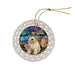- Ceramic Ornament is flat and measures 3" in diameter