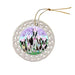 - Ceramic Ornament is flat and measures 3" in diameter