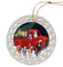 - Ceramic Ornament is flat and measures 3" in diameter