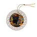 - Ceramic Ornament is flat and measures 3" in diameter