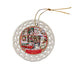 - Ceramic Ornament is flat and measures 3" in diameter