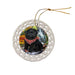 - Ceramic Ornament is flat and measures 3" in diameter