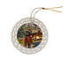 - Ceramic Ornament is flat and measures 3" in diameter