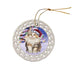 - Ceramic Ornament is flat and measures 3" in diameter