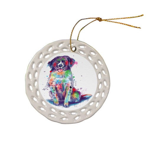 Doggie of the DayWhat a FANTASTIC Ornament! Ceramic Ornament is flat and measures 3" in diameter Each Ornament includes a ribbon loop to easily hang from your Chri...