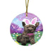 - Ceramic Ornament is flat and measures 2.75" in diameter