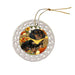 - Ceramic Ornament is flat and measures 3" in diameter
