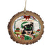 You will be sure to spread Holiday cheer this year when you display your round wooden shaped ornament and it will be a unique addition to your tree!