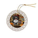 - Ceramic Ornament is flat and measures 3" in diameter
