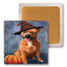 Happy Halloween American Staffordshire Terrier Dog Wearing Witch Hat with Pumpkin Set of 4 Natural Stone Marble Tile Coasters MCST49784