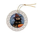 Happy Halloween Cocker Spaniel Dog Wearing Witch Hat with Pumpkin Ceramic Doily Ornament DPOR54853