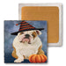 Happy Halloween English Bulldog Wearing Witch Hat with Pumpkin Set of 4 Natural Stone Marble Tile Coasters MCST49946