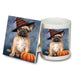 Happy Halloween French Bulldog Wearing Witch Hat with Pumpkin Mug and Coaster Set MUC54940