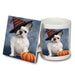 Happy Halloween French Bulldog Wearing Witch Hat with Pumpkin Mug and Coaster Set MUC54941