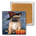 Happy Halloween French Bulldog Wearing Witch Hat with Pumpkin Set of 4 Natural Stone Marble Tile Coasters MCST49948