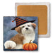 Happy Halloween Malti Tzu Dog Wearing Witch Hat with Pumpkin Set of 4 Natural Stone Marble Tile Coasters MCST49738