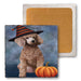 Happy Halloween Poodle Dog Wearing Witch Hat with Pumpkin Set of 4 Natural Stone Marble Tile Coasters MCST49769