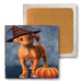 Happy Halloween Rhodesian Ridgeback Dog Wearing Witch Hat with Pumpkin Set of 4 Natural Stone Marble Tile Coasters MCST49798
