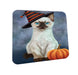 Happy Halloween Siamese Cat Wearing Witch Hat with Pumpkin Coasters Set of 4 CST54765