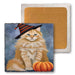 Happy Halloween Siberian Cat Wearing Witch Hat with Pumpkin Set of 4 Natural Stone Marble Tile Coasters MCST49810