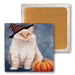 Happy Halloween Siberian Cat Wearing Witch Hat with Pumpkin Set of 4 Natural Stone Marble Tile Coasters MCST49811