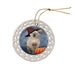 - Ceramic Ornament is flat and measures 3" in diameter