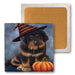 Happy Halloween Tibetan Mastiff Dog Wearing Witch Hat with Pumpkin Set of 4 Natural Stone Marble Tile Coasters MCST49824