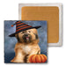 Happy Halloween Tibetan Terrier Dog Wearing Witch Hat with Pumpkin Set of 4 Natural Stone Marble Tile Coasters MCST49825