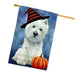 Happy Halloween West Highland White Terrier Dog Wearing Witch Hat with Pumpkin House Flag FLG55139
