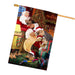 Yokshire Terrier Dog and Puppies Sleeping with Santa House Flag