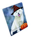 Happy Halloween Slovak Cuvac Cat Wearing Witch Hat with Pumpkin Cutting Board C69186