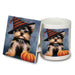 Happy Halloween Yorkshire Terrier Dog Wearing Witch Hat with Pumpkin Mug and Coaster Set MUC54839