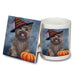 Happy Halloween Cairn Terrier Dog Wearing Witch Hat with Pumpkin Mug and Coaster Set MUC54865