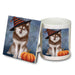 Happy Halloween Siberian Husky Dog Wearing Witch Hat with Pumpkin Mug and Coaster Set MUC54772