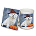 Happy Halloween Slovak Cuvac Cat Wearing Witch Hat with Pumpkin Mug and Coaster Set MUC54805