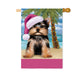 Personalized Summertime Happy Holidays Christmas Yorkshire Terrier Dog on Tropical Island Beach Custom House Flag FLG-DOTD-A60612
