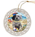 - Ceramic Ornament is flat and measures 3" in diameter