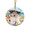 Pet Friendly Beach Fox Terrier Dog Round Flat Christmas Ornament RFPOR50028