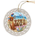 - Ceramic Ornament is flat and measures 3" in diameter