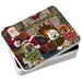 - Cookie Tin measures 6” x 8” x 3" tall. Metal