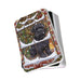 - Cookie Tin measures 6” x 8” x 3" tall. Metal