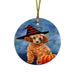 Happy Halloween Poodle Dog Wearing Witch Hat with Pumpkin Round Flat Christmas Ornament RFPOR54952