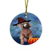 Happy Halloween Poodle Dog Wearing Witch Hat with Pumpkin Round Flat Christmas Ornament RFPOR54957